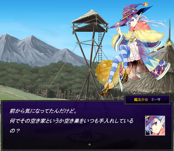 シェイズは空き家の掃除を日課にしています。それを見たミーサが理由を聞きたがっている。罰ゲームで掃除をさせられているんだろうか。