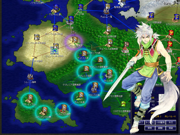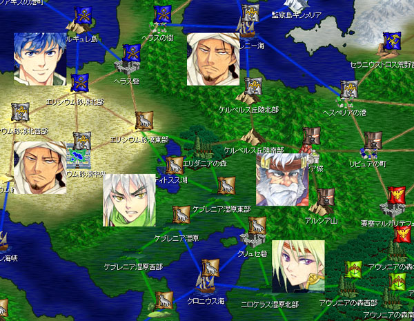 9ターン目が始まりました。砂漠は3つの勢力が争い続けていた激戦区です。クーニッツ騎士団が優勢だったのにリオンが蹴散らしてしまった。
