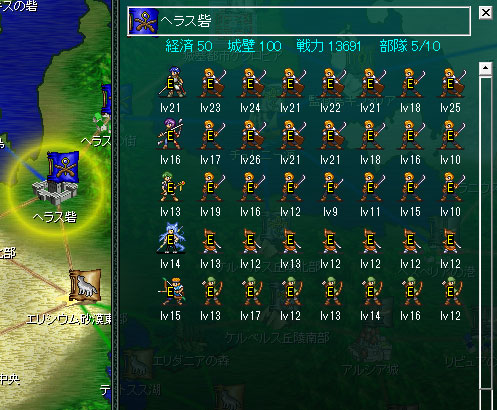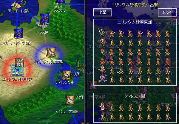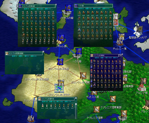 エリシウム砂漠中央は経済値が500もある。この収入でケモミミを雇って戦力を充実させよう。敵が隙を見せたら都市に配置した16部隊で奇襲するのも悪くない。