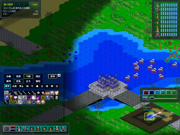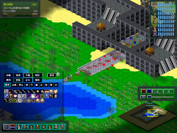 ハウンドドッグが城門を突破したようです。プレイ当時は恐る恐る進軍を指示していた。よく考えれば戦力差10倍の敵を襲うはずは無いのにね。