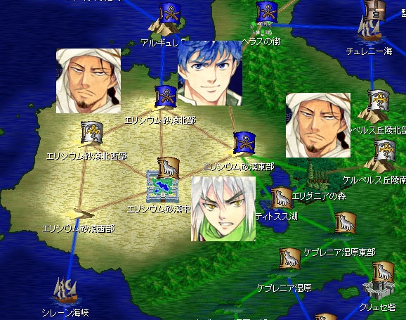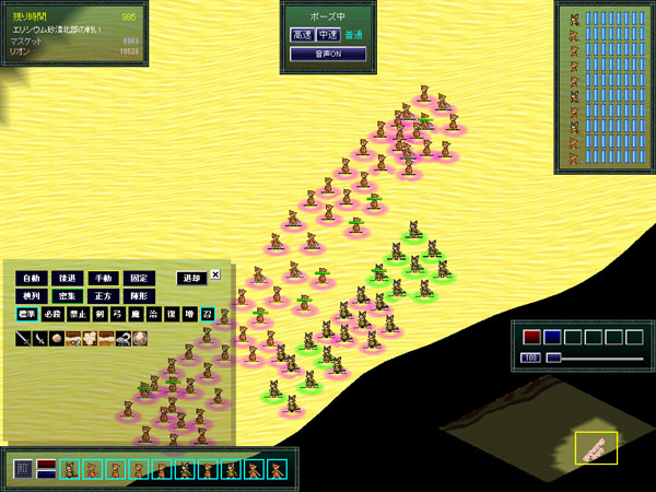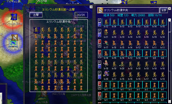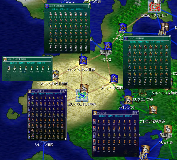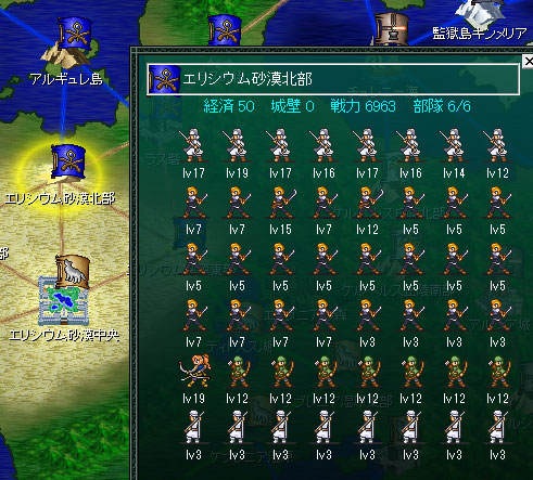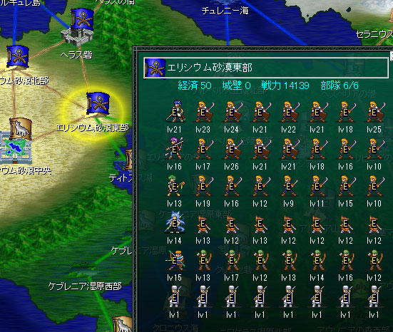 エリシウム砂漠東部にはマスケットの主力が駐屯をしている。ここに攻め込むのは厳しいのです。砂漠北部から援軍が来て銃ユニットに包囲されてしまう。