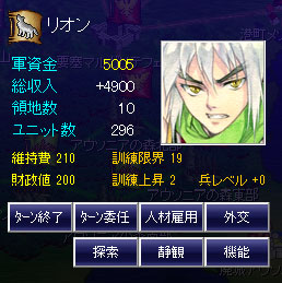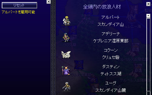 領内に雇用可能な人材はいません。リオンに味方をしてくれる人間はいないんだよ。ハステロイが仲間になった理由は謎です。セリフからして変わった性格の人ではあった。
