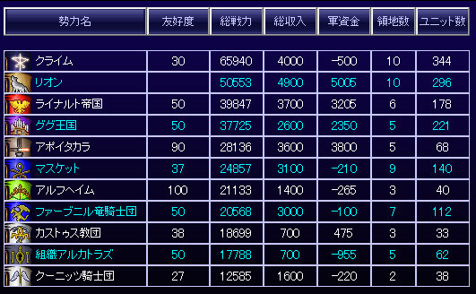 現在の勢力表