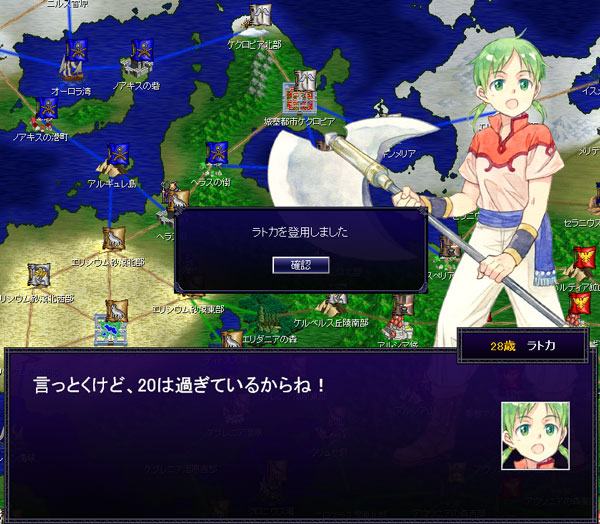 んん!?知らない人が仲間になりました。年齢よりも若く見えるラトカさん。名前の横に28歳と書かれても動じません。クレヨンを買ってあげたら喜んでくれそう。