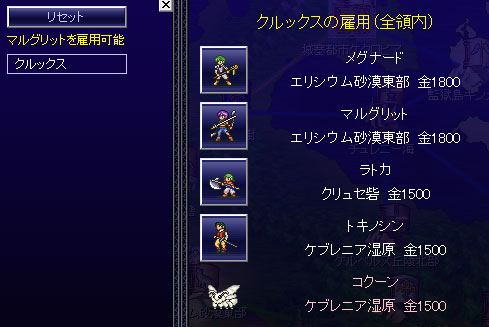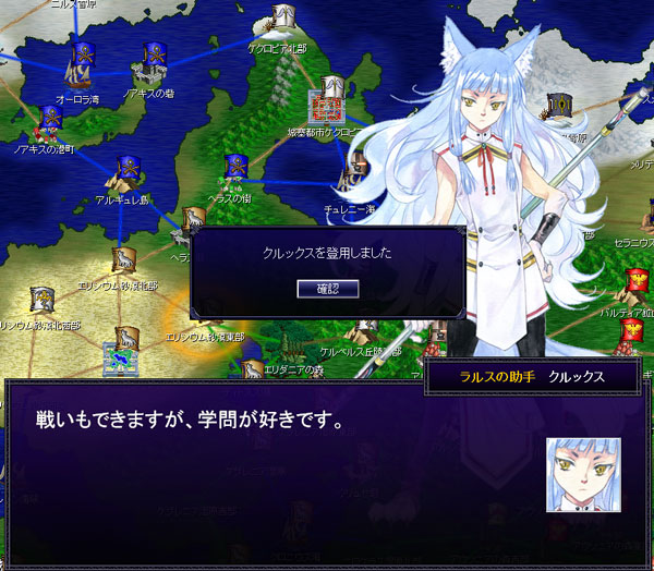 コリーに雇用を実行させてクルックスがリオン軍に加わりました。ケモミミが増えたぞお!戦いよりも学問が好きらしいです。