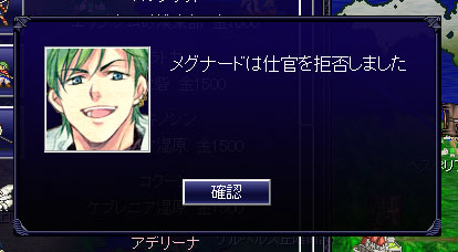 かつての同僚メグナードは仕官を拒否しました。健やかな顔をしているのに冷たいなあ。実はケモミミが嫌いだったとか?