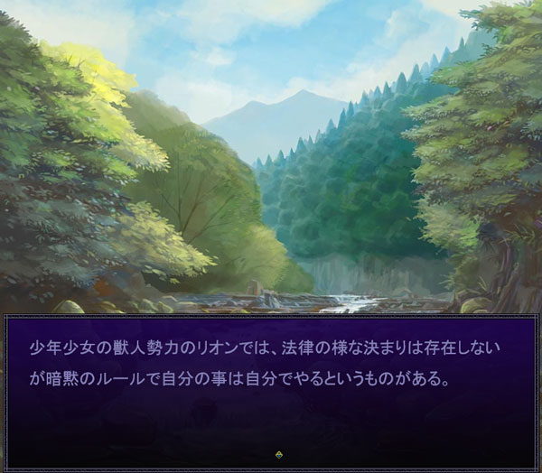 イベントの舞台は山の中みたいだ。リオンは戦災孤児が集まった勢力です。法律はないが自分のことは自分でやると暗黙のルールがあるらしい。ケモミミ達は自立心があって立派ですね。大人がいないほうが逆にしっかりするみたいな。