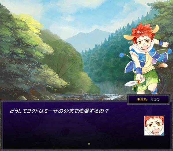 ヨクトとクロウが川で洗濯をしています。このイベントは2人の会話がメインなんでしょうか。