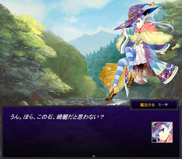 ヨクトの主人であるミーサは上の画像の女の子です。洗濯はヨクトに任せて綺麗な石を拾いながら遊んでいる。