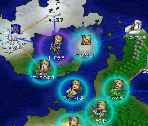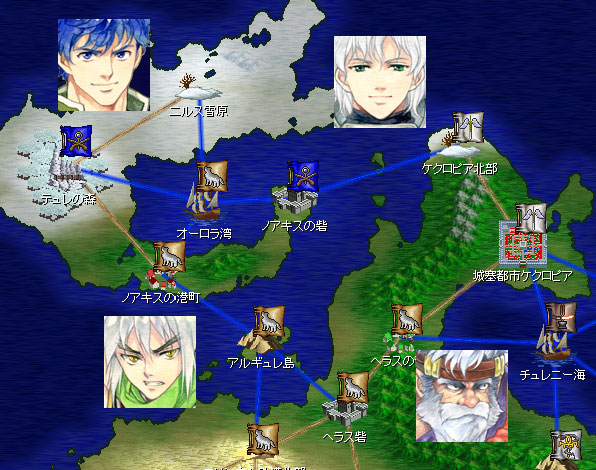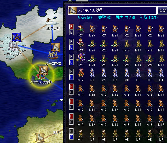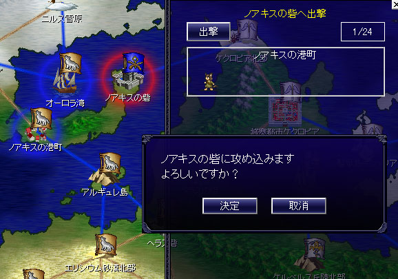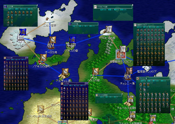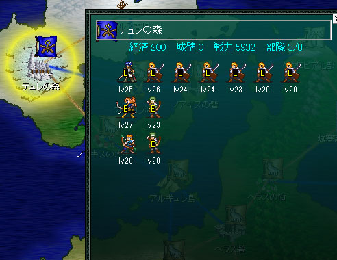 オーロラ海に駐留していたラルスはノアキスの砦かテュレの森へ逃げました。マスターのラルスが放浪人材になればマスケットは滅亡します。各都市を観察してみますね。