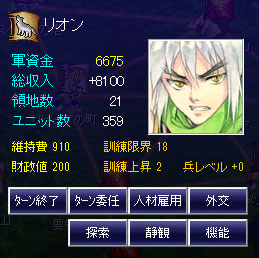 14ターン目はあと2つくらい領地を増やそう。その後は人材雇用でラルスを雇えるか試します。