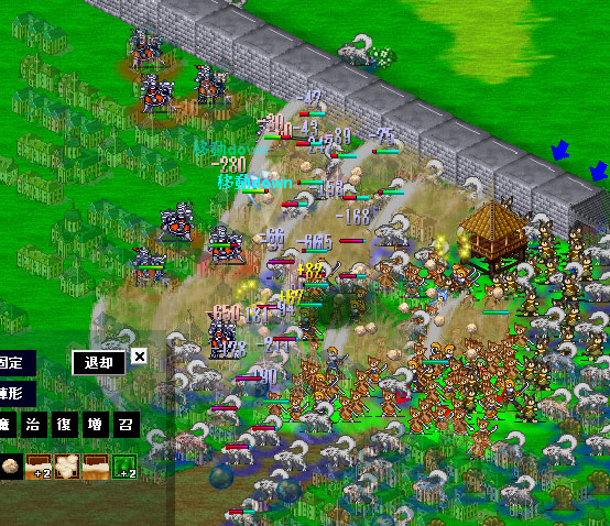 騎兵側にいる召喚獣が全滅しそうだ。すでに何体かのケモミミが倒されているしマズくない?つーか、最後尾で魔法を唱えているキャラは人材ユニットだよな。んん!?あいつはジギスヴァルトだ!!