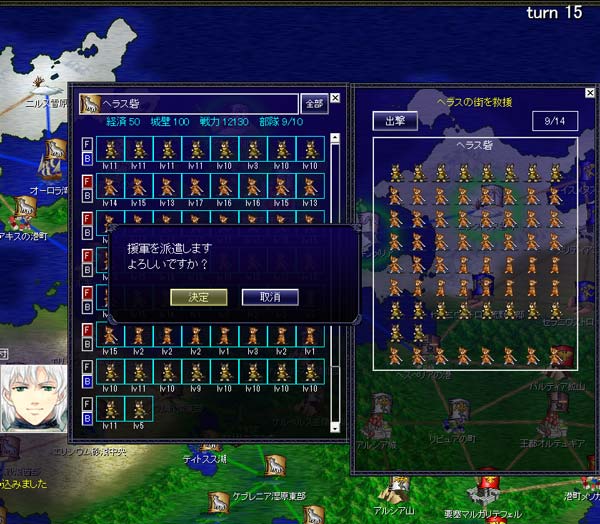 ヘラス砦に配置しておいたケモミミを出撃されます。これでリオンの戦力は16000+10000+訓練値になるはずだ。要塞を利用できるから一方的な敗戦にはならないと思うけど。