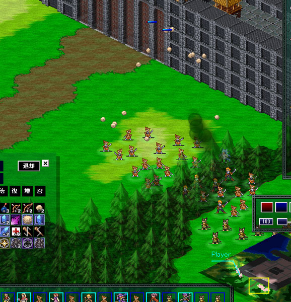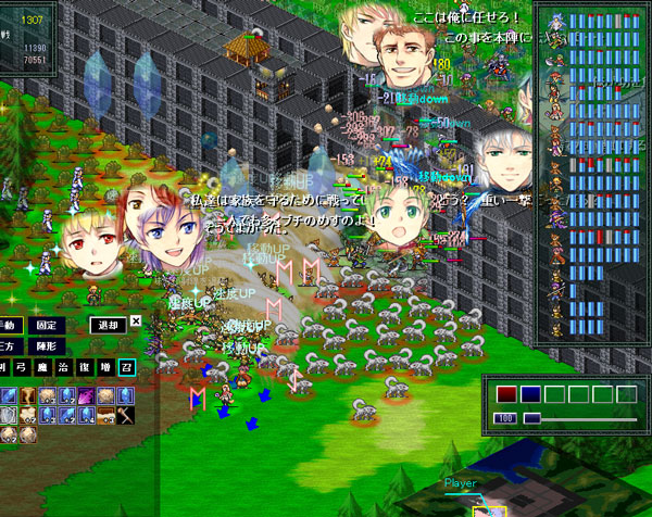 地術師を安全な位置へ移動させることには成功する。しかしながら召喚獣は壁の役目を果たしていないし前列ユニットが騎兵に襲われています。このピンチをプレイ中の自分は察していなかった。『後列だけを逃がす、これぞ采配の妙なり!』と、調子にのっていたはずだ(泣)。