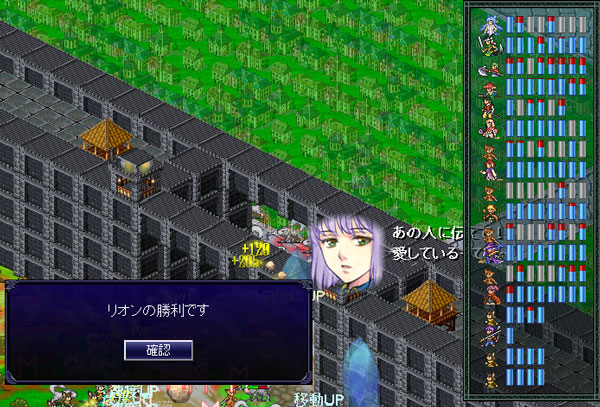 クリステルを倒したところでリオンの勝利になりました。僧侶の女の子は逃げてしまったのかな。まだクーニッツ騎士団の都市は2つ残っています。またこのメンバーと顔を合わせることになります。