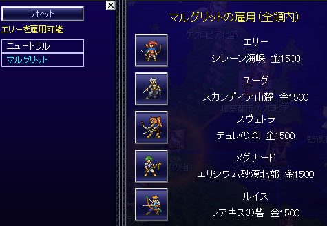 雇用可能な人材ユニットは何名もいます。シェイズ達を出撃させたら人件費がいくら掛かるか分からん。人材ユニットの雇用は後回しにします。