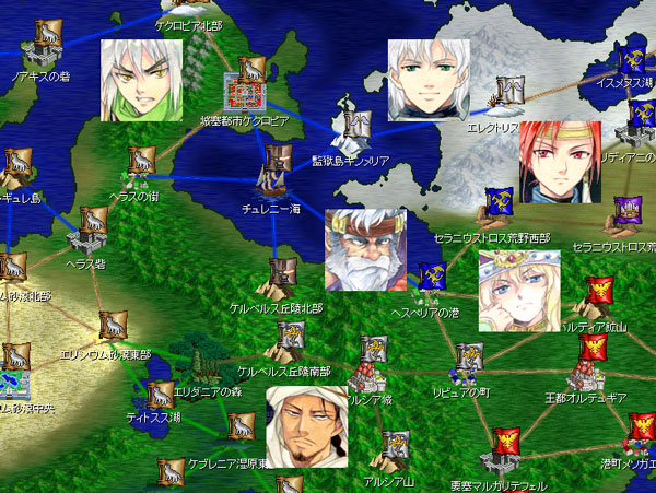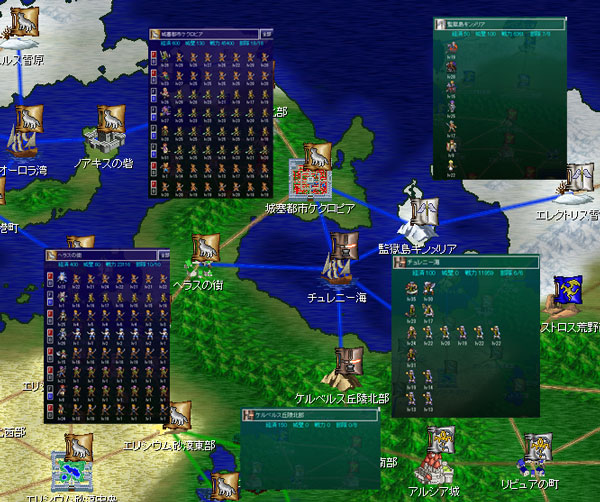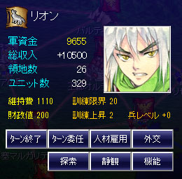 一時は帝国の首都を占領するほど勢いがあったんだけどね。リオンの東進に釣られて兵を北に寄せた隙に奪い返されてしまったんだな。ググ帝国と同盟を組んだ時はこいつが中央を制覇するのかと思ったよ。