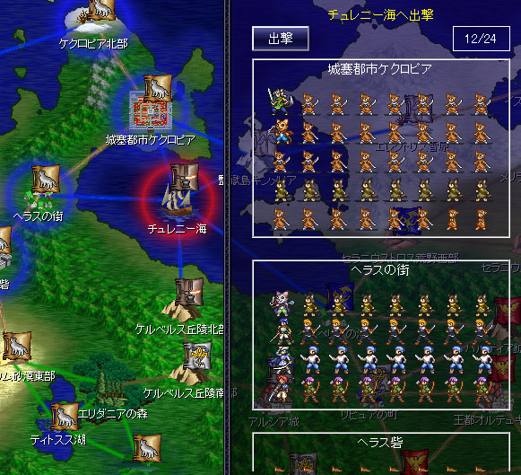 さて、チェレニー海の戦いが始まりました。進攻した経路の関係により部隊は2つに分かれております。上の画像は召喚の得意な壁担当の部隊だ。
