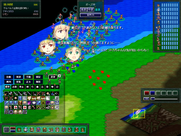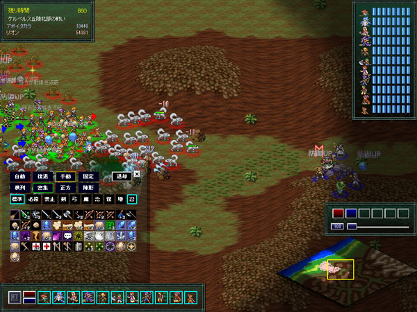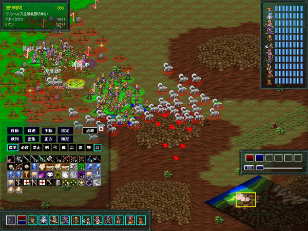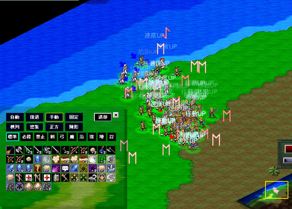 なんとか全てのユニットを陸地に上げることに成功。一塊になりながら進軍しましょう。敵は必殺技を使うから早く召喚オンにしようぜ。