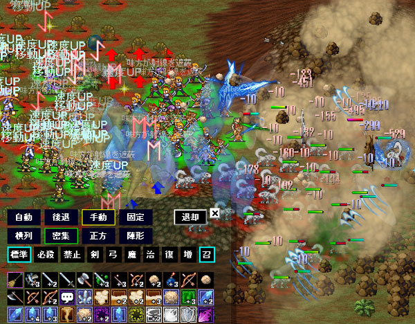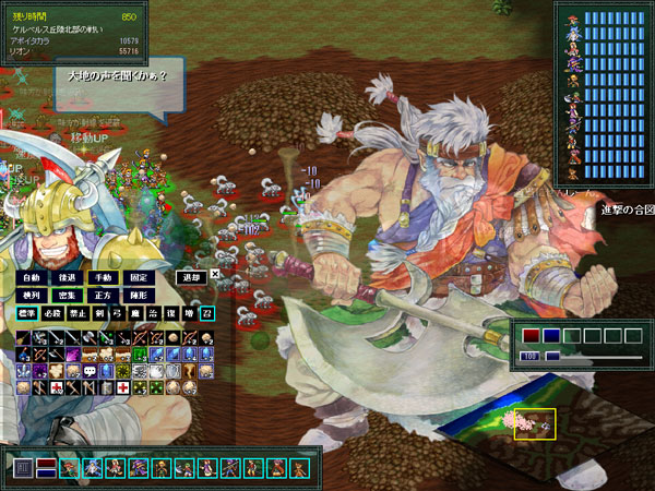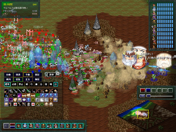 戦場に岩の塔が乱立したようてす。ドワーフ達の必殺技はいまいち効果が分からない。砂煙に巻き込まれないようユニットを後退させるぞ。