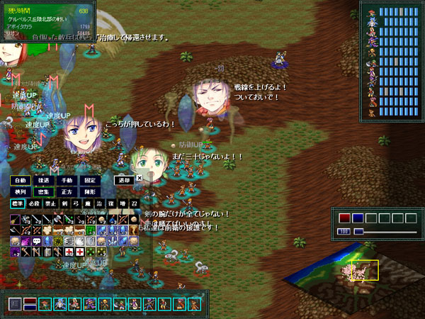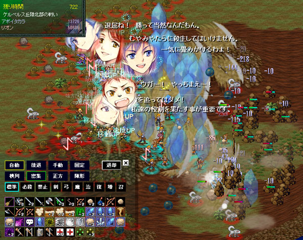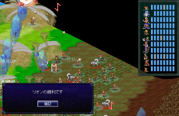 敵のユニットが後退を始めました。射程はあちらの魔法使いの方が長いので突撃しましょう。手動から自動に切り替えてしてケモミミ達を暴れさせます。