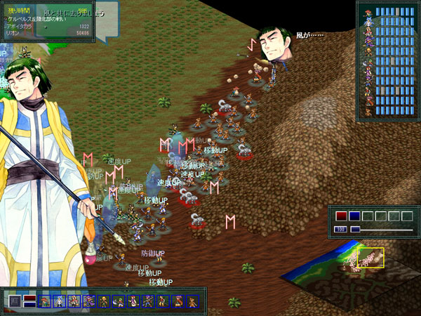 ちょっと分かりにくいけど画面の右上に魔法使いがいます(ヘイモ)。彼は遠方からひたすら風魔法を撃つので本当に厄介だ。移動力アップの地術を使いながら追いかけましょう。