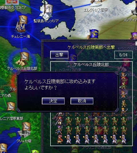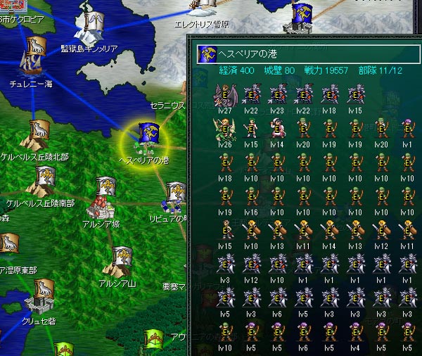 チェレニー海の都市だけでぺスペリアの港、監獄島キンメリアからの進攻を抑えています。この膠着は維持をしたいから攻め込むならケルベルス丘陵南部になるのかね。
