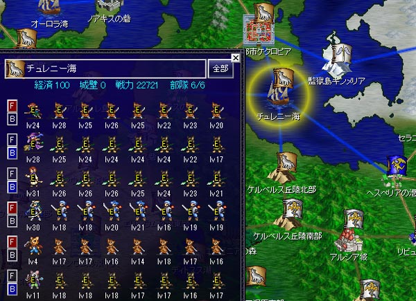 現在における最重要防衛都市のチェレニー海は6部隊しかおけません。だけどケクロピアから援軍を派遣できるから防衛はしやすい。海戦の得意なアルレットもいるしね。