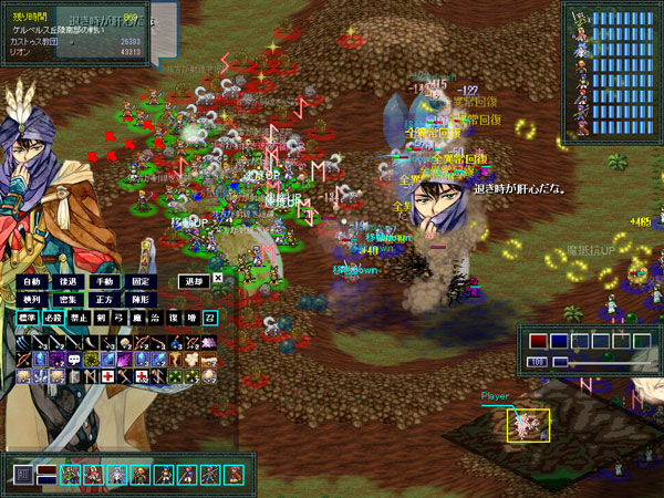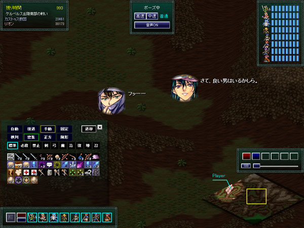 戦闘開始直後のメッセージで敵部隊の居場所はだいたい分かるようです。マップの中央に布陣しているのか。ある程度までは召喚無しで近づけるかな。