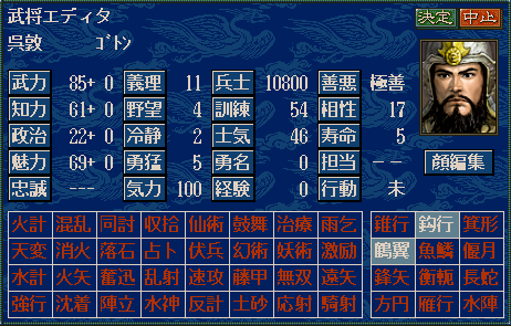 (武将をゲームに登場させてマスクデータを見るたびに相性値が変化していたりします。理由はわかりません)