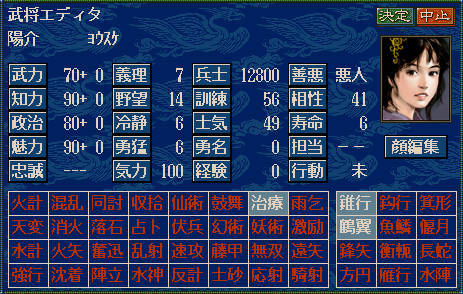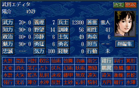 悠真「超常現象の特殊能力は『仙術、雨乞、天変、幻術、妖術、水計、占卜』と定義しており偶然にも武将がこれらの特技を1つ2つ3つと獲得した場合は『①水陣+史実モードの能力②治療③任意』の順番に変化させる。ただし占トは諸葛亮など史実モードで所有している武将のみOKだ
