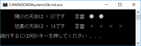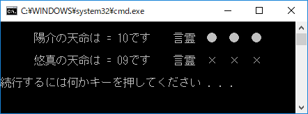 悠真はいつものように元気いっぱいにサイコロを振ろうとする。僕はといえば最後だというのに満足のいかない現状にしょんぼりしていた。そんな姿を見かねたのか『おいおい、どうした?』などという声が聞こえてきる。同情なんてされたくない、僕は諦めてなんかいない。次に僕が言霊を4つ引ければ、いや、自分の言霊は2つか3つでも良い。せめて悠真が0になれば今後の駆け引き次第でまだいけるんだ!悠真が0になれば!0になれ!