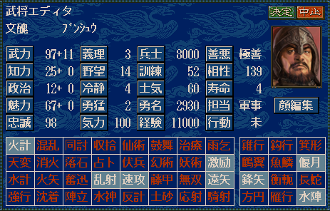 悠真は『無論だ』と頷き武将のエディタ画面を開いた。ひー!いったい何人の武将をチェックして編集すればいいんだよお!100人以上はいるんじゃないか?