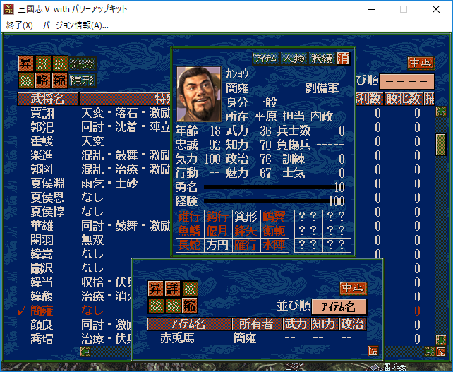 陽介「簡雍が赤兎馬(速攻・強行・騎射・退却率100%を収得)を持っているけど弱い(笑)」
