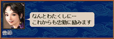 陽介「曹節の忠誠度が下がり過ぎると引き抜きかれる以前に愛想をつかされて出奔してしまうかも。僕と同じく相性40付近の君主がいるかもしれないので忠誠を100にしてしまおう」