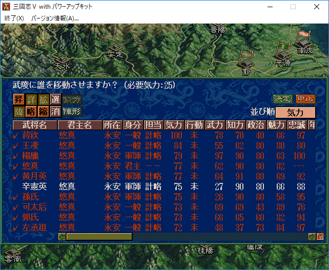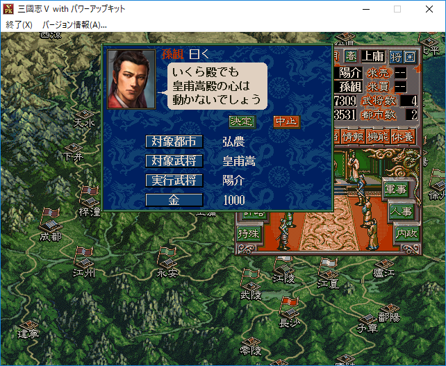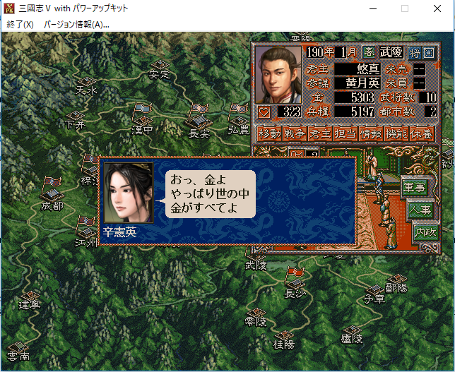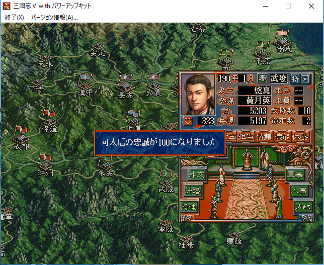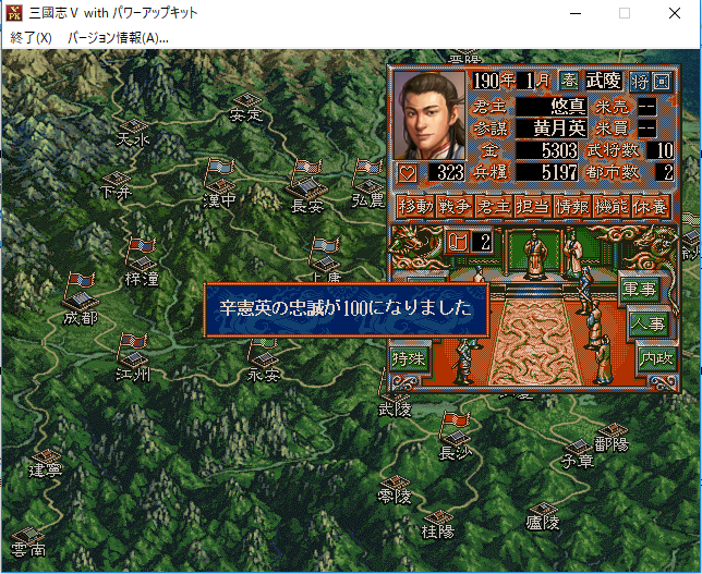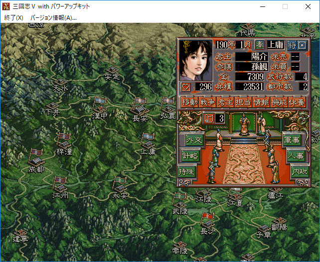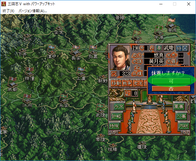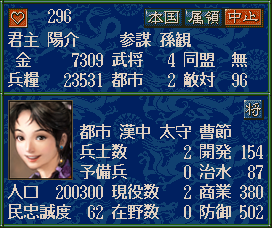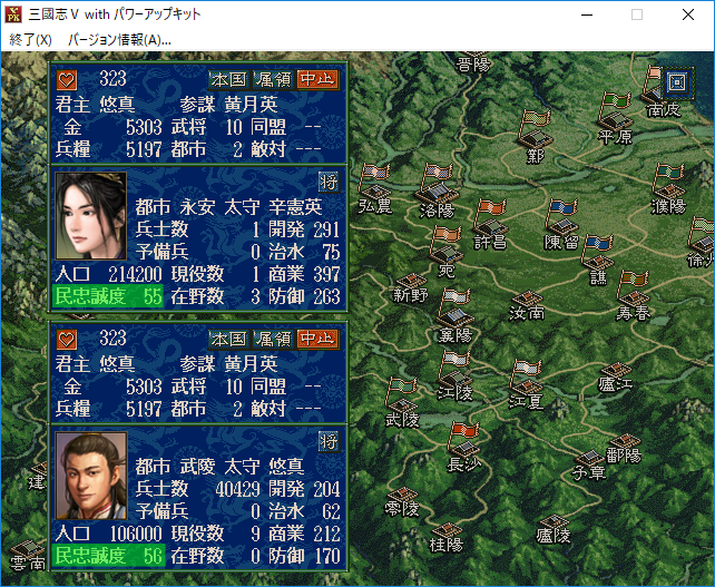 陽介「うっ!本拠地として始めた漢中の民忠は62でセーフだけど悠真から奪った上庸は51だ。今は1月だから反乱の危険があったのか」
