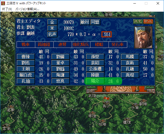 ゆえに悠真の言霊が0なのを天佑と捉えて『どちらかの勢力と同盟する(言霊)』→『人材登用』→『募兵』→『永安進攻』と行動するのがベストだと思われる。侵攻された場合、同盟勢力から援軍を要請することができるのでAIから見れば兵力が水増しされたと見なされるから例えば劉焉と同盟すれば劉表は永安へ手出しをしないだろう。