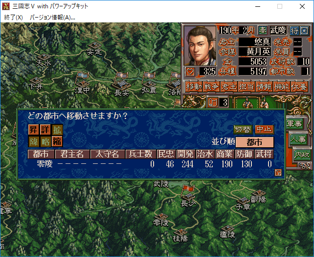 陽介「しかし、孫堅が武陵へ進攻するか分からないし、僕のターンが先にくれば孫堅が進攻する前に武陵をおさえるよ!なにより人口が少なく零陵から4万の兵が援軍として駆けつける(とAIは予測する)悠真領の武陵なんかよりも他に攻め込む都市はいくらでもあるじゃないか!」