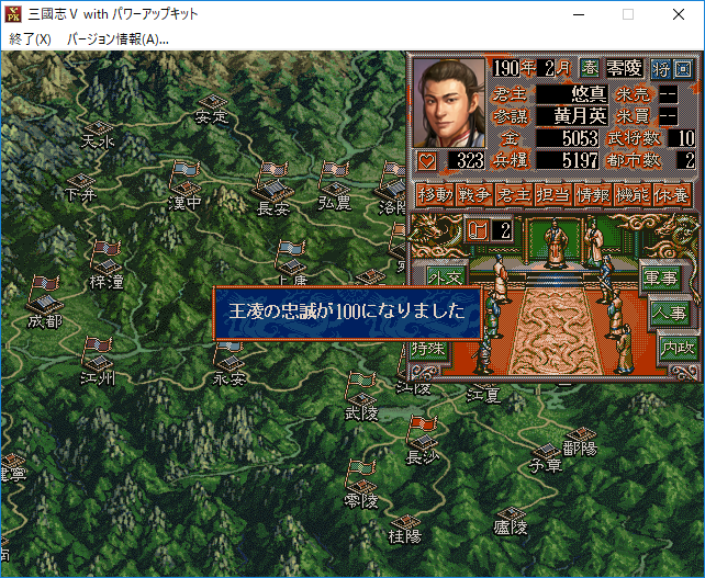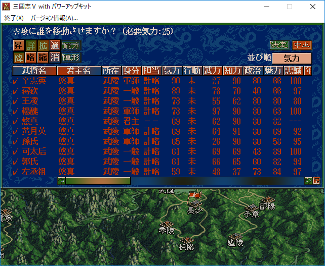 悠真は零陵の民忠誠度を65にした(天命×言霊数をプラス)。あいつは本気で零陵を本拠地にするつもりだぞ!ほ、ほんとうに孫堅は武陵に進攻するのか?・・・あれ?