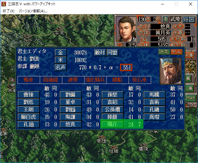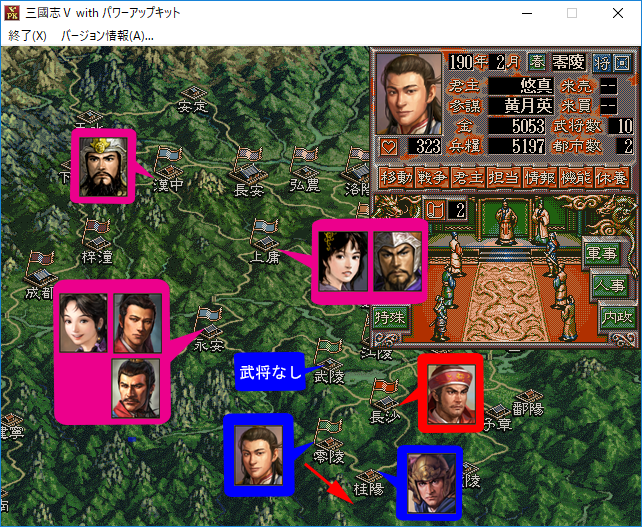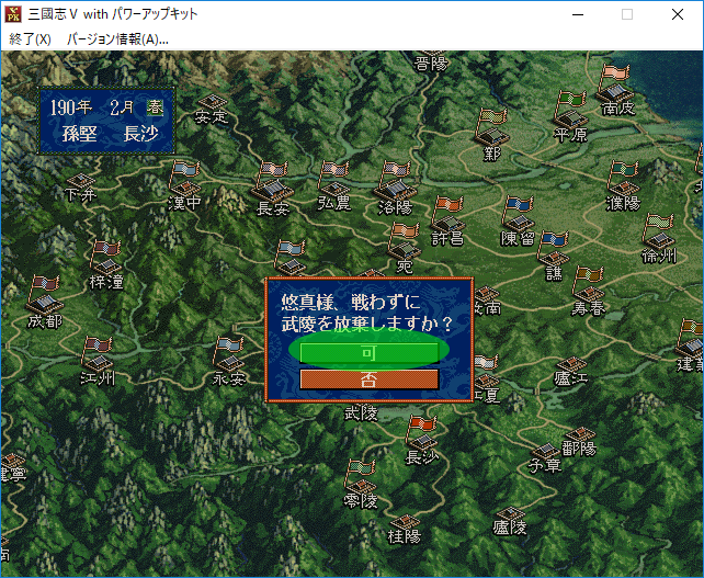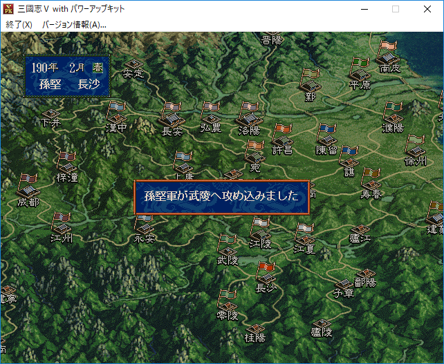 陽介「やっぱり孫堅が武陵へ進攻するのはありえない!だって孫堅は今までずーっと他の都市へ攻め込まなかったじゃないか!AIが空白地よりも群雄が所有する都市への進攻を好むのならば劉表領へ攻め込んでいてもおかしくないのに!」
