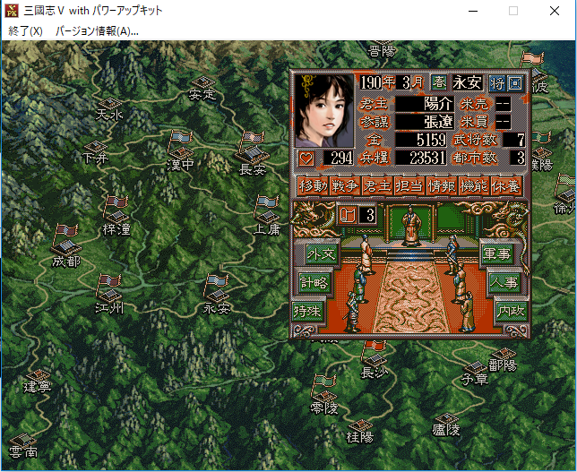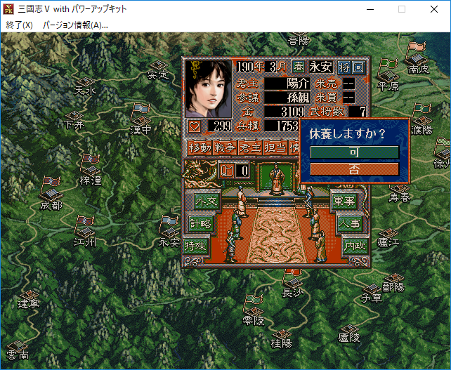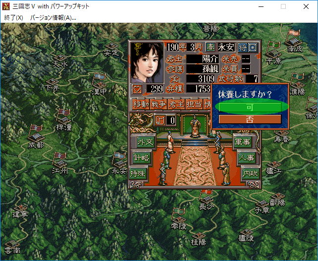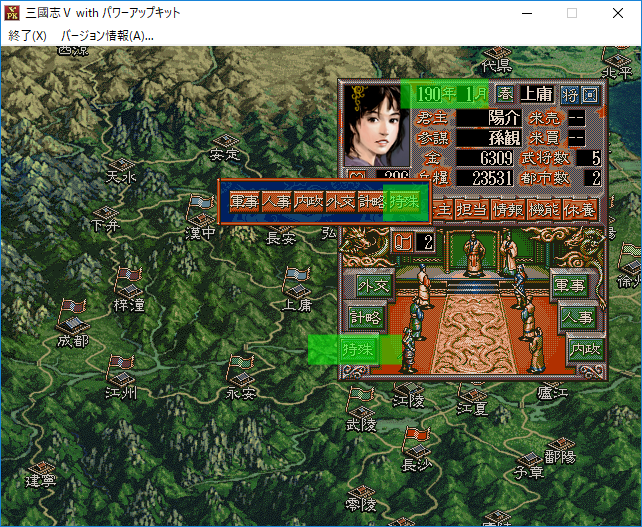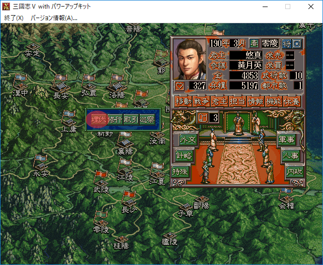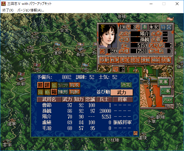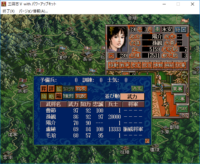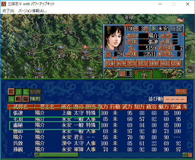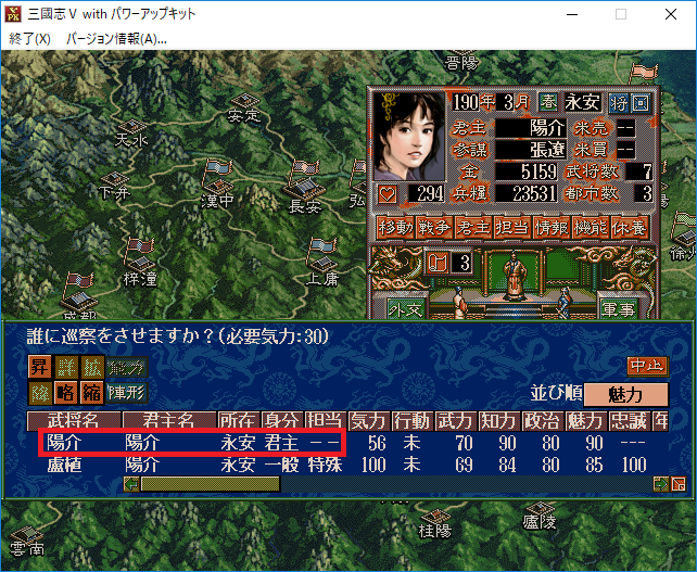 なるほど。それでは曹節に特殊を担当させて巡察をさせよう。経験値がたまって特殊能力を覚えるかもしれない。