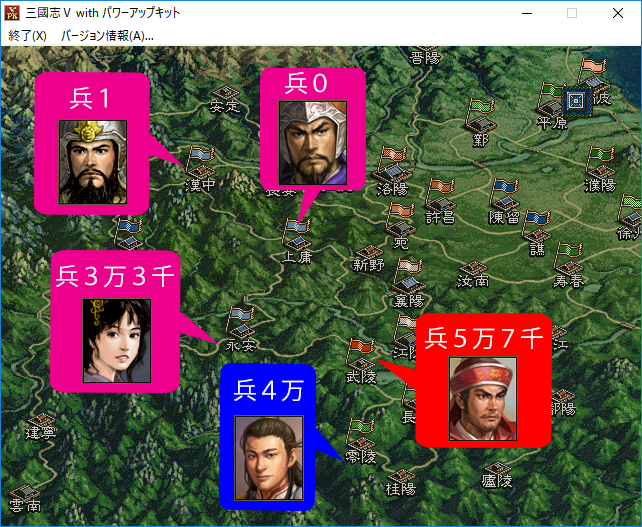 陽介「上庸の民忠誠度を上げたら名声の値も上昇した。このまま残りの言霊も民忠の上昇に使いたくなってきたけど(笑)、自分が四面を敵に囲まれている事を忘れてはだめだ!呉子曰く!武侯は呉起の進言に従い兵車、騎馬をあたえた!『於是武侯従之、兼車五百乗、騎三千匹』!」