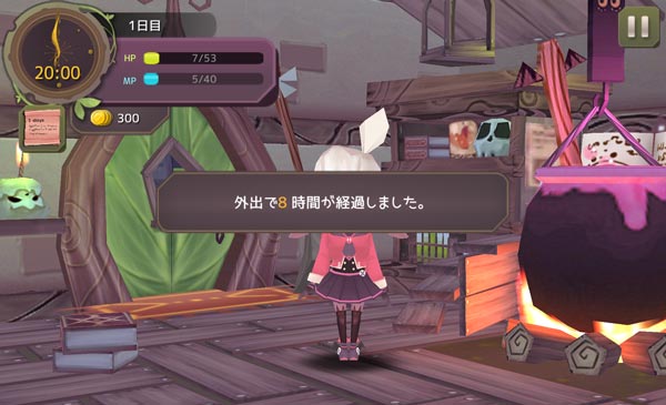 アイテムを拾いつつお家に戻ってきました。HPとMPが減りまくっていますね。今日は休むことしかできないかもしれない。