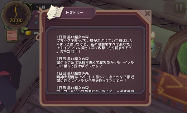 さて、時刻は20:00です。アイテム合成もできないだろうし修練をして寝ましょう。その前にヒストリーを確認しようか。
