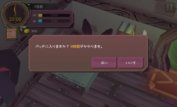 もう寝ちゃいましょう!たぶん今はペットを使用するチュートリアル中なのです。魔法の合成もできないだろうし体力を回復させまーす!