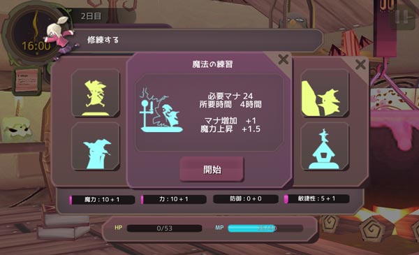 もう修練をして今日を終わらせましょう。HPは0だけどMPを消費する修練もあるのです。『魔法の練習』をします!