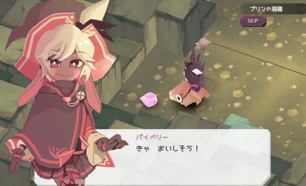 モンスターを見たパイベリーの感想は『おいしそう』。可愛いとかじゃないんだね(笑)。まあプリンって名前をしているくらいだから甘い味がするんだろう。