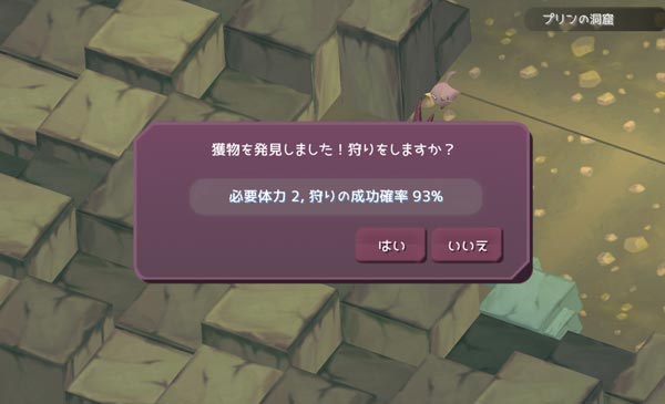 洞窟を初探索です。獲物を探しましょう!1匹狩るのにHPを2使うのならば26体は捕獲をしたいね。
