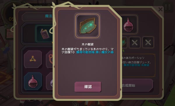 あとは木の樹液を集めれば良いと。獲得できる場所は黒い魔女の森、つまり近所ですね。