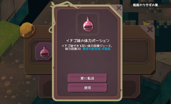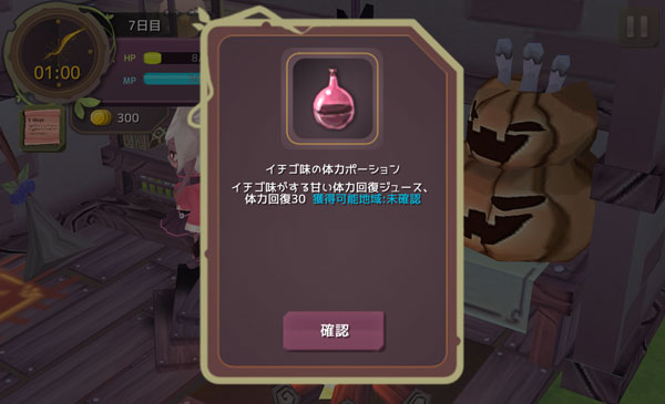 まずはイチゴ味のポーションを作りましょう。2つ作りました。時間は7日目の2:00です。